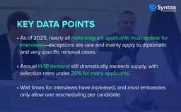 So even if you’ve held an H-1B before, you now likely must appear for a face-to-face interview when renewing or stamping abroad.